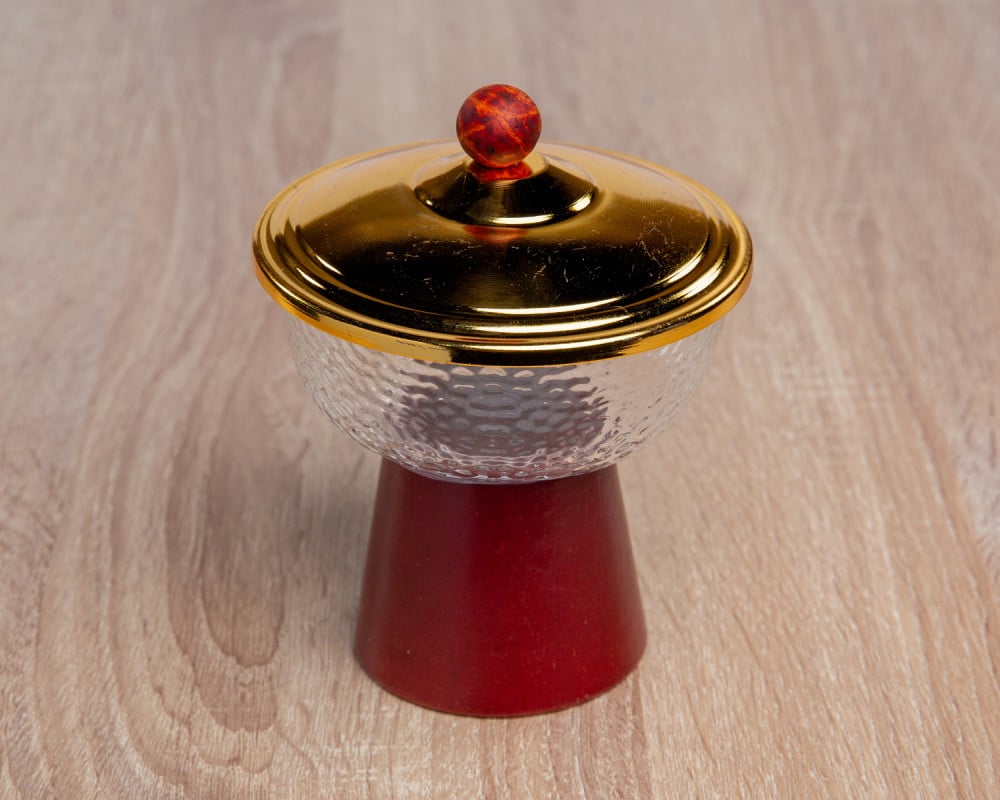 تمريه زجاج بقاعدة خشبيه و غطاء ذهبي