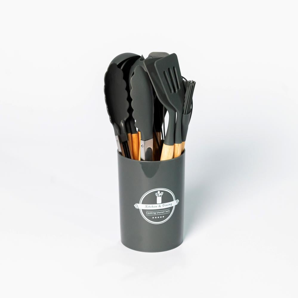طقم ملاعق سيلكون بأيادي خشبيه