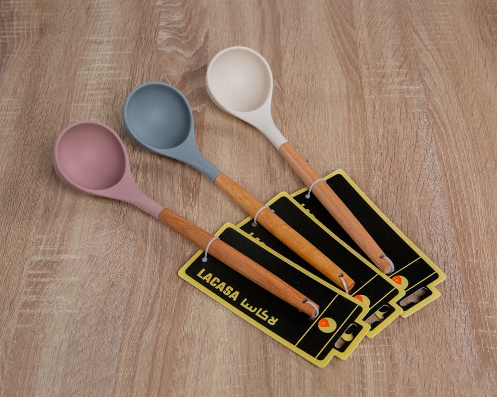 ملعقة طبخ سيلكون بيد خشب